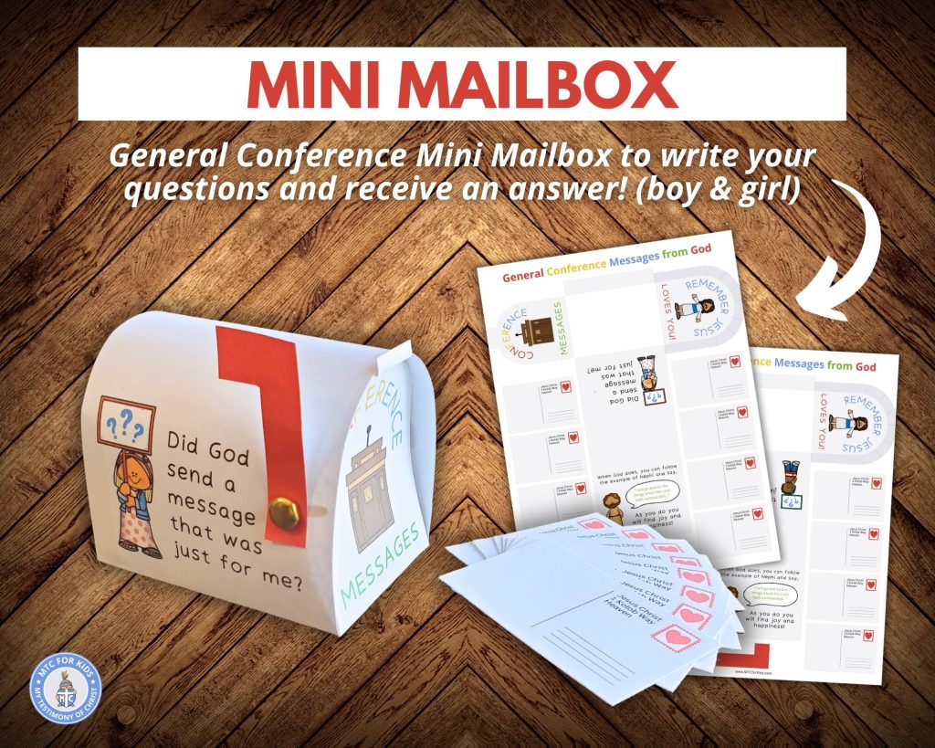 Here is the free printable for you to print and make into a mini mailbox. The instructions on how to put it together is at the end of this week’s Come Follow Me video. It will last longer if you print on cardstock. You will also need scissors, glue stick or tape, and one brad per mailbox.